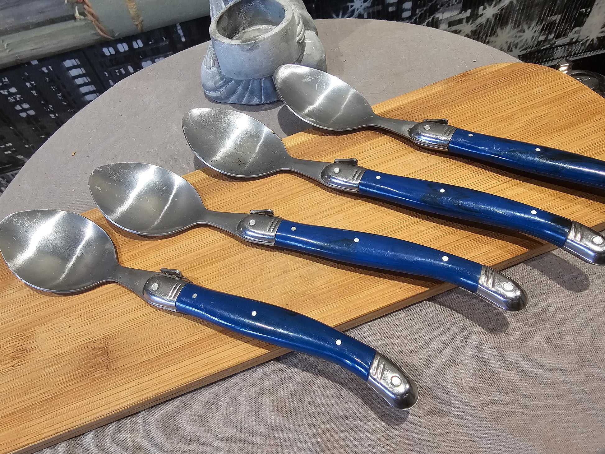 Couverts de Luxe x4 cuillères à soupe Laguiole Bleus Dorés XXe collection Inox France